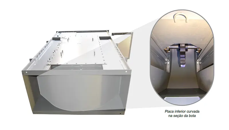 • A porta de inspeção da bota (limpeza) oferece fácil acesso para inspeções de manutenção preventiva.