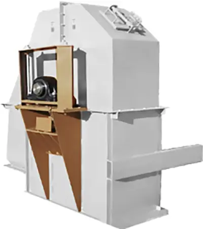 A transmissão do elevador de canecas está montada em uma base com o acoplamento de grade alinhado por laser. O redutor possui uma transmissão auxiliar para uma manutenção mais segura e eficiente.